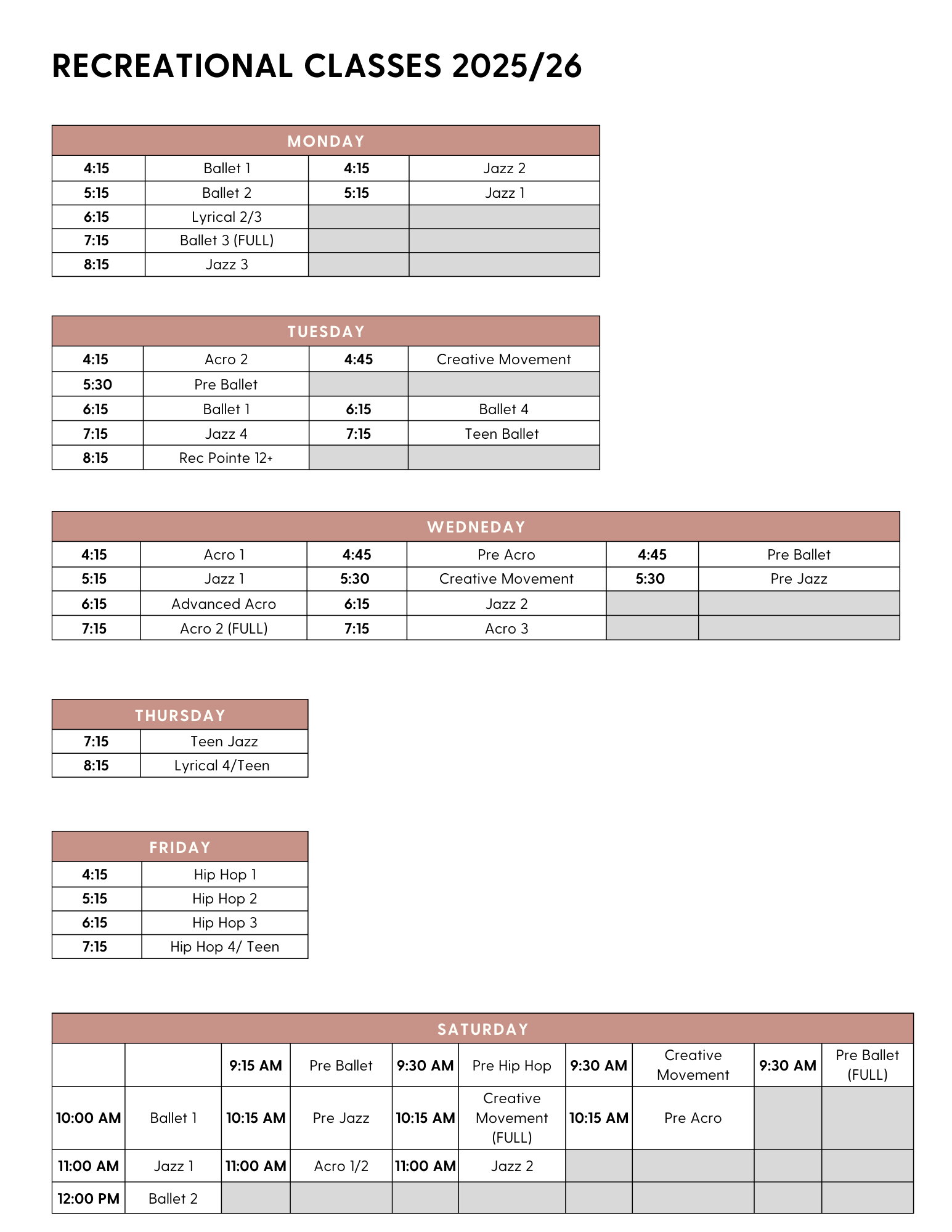 Lyrical classes must be coupled with Ballet or Jazz Technique.